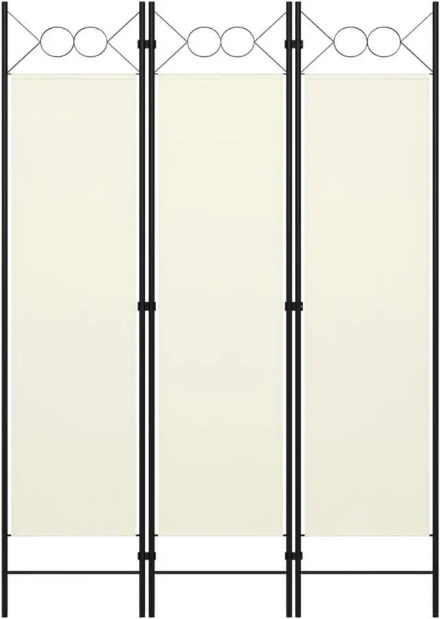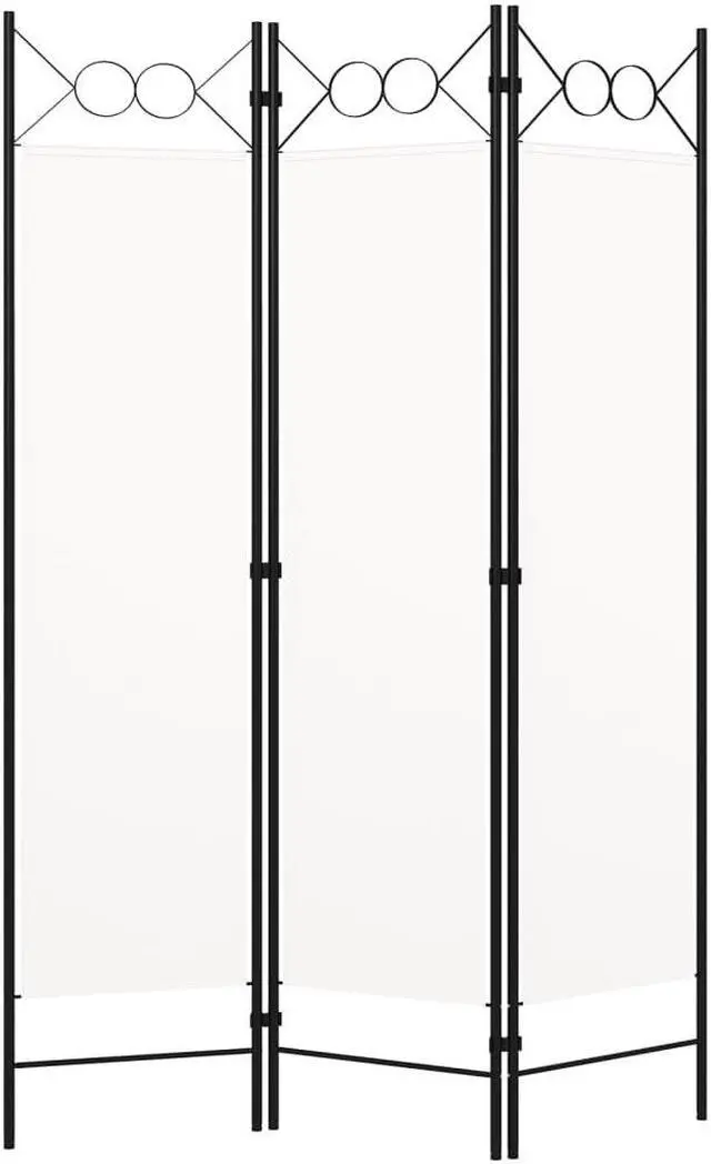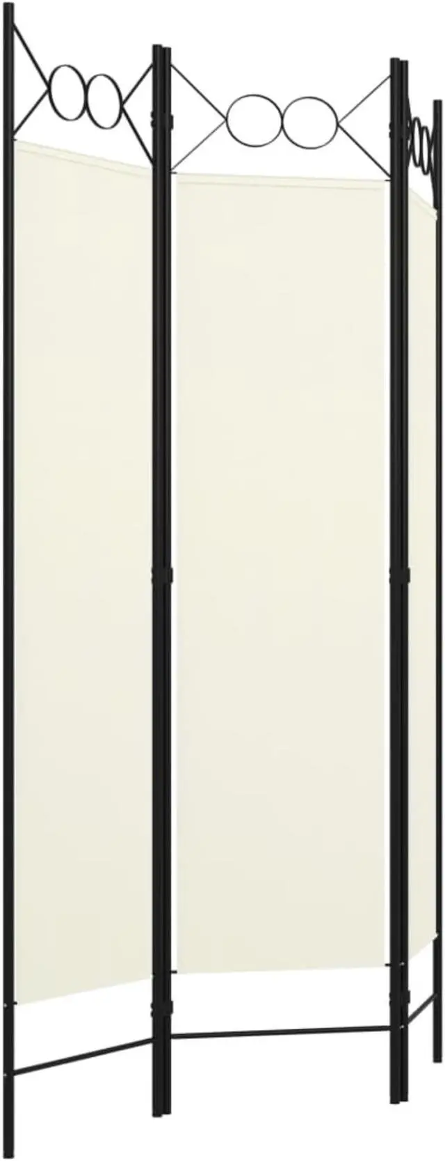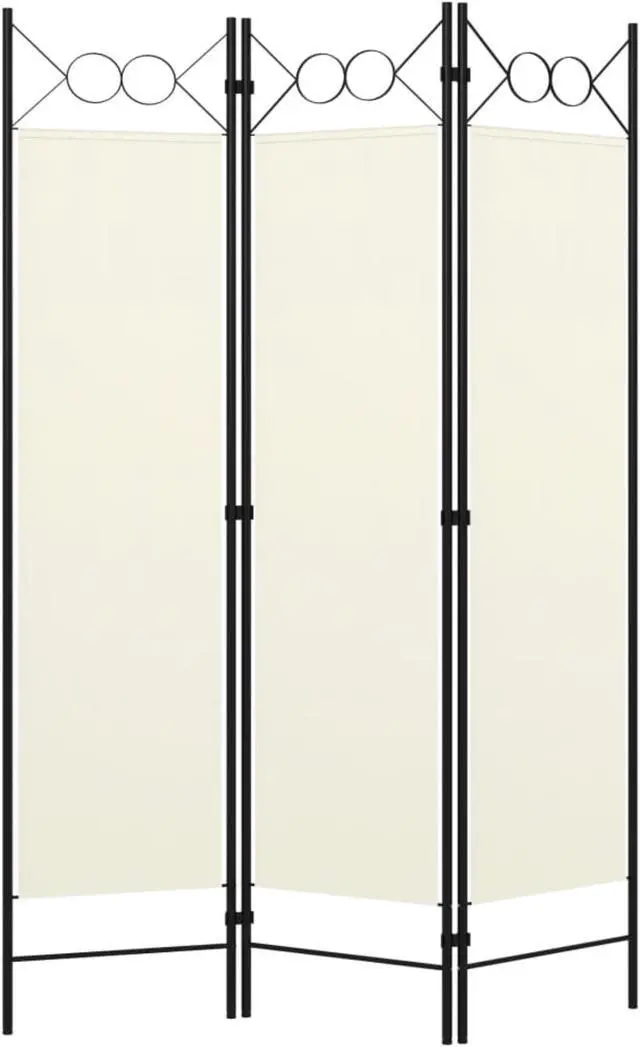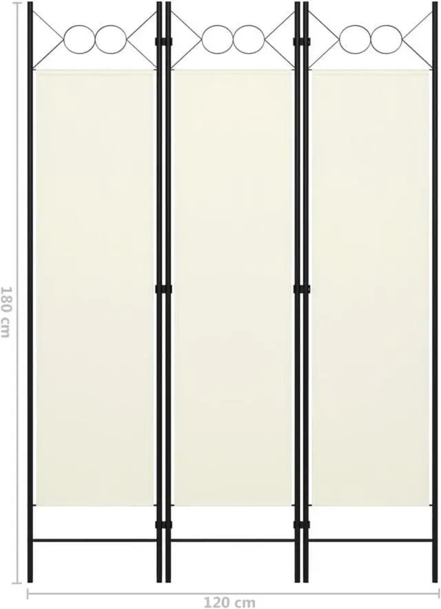 Our freestanding and practical 3-panel room divider can be used as a partition, privacy screen or for decoration. It provides ideal privacy in the bedroom or a compartment of the room. Top with circle design adds extra elegance. This room divider, made of powder-coated iron frame and fabric screens, can be easily folded when not in use.