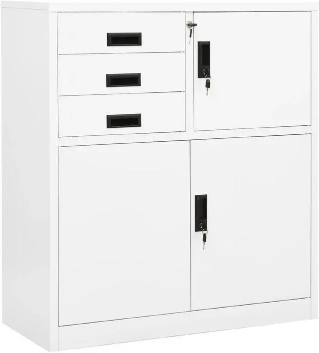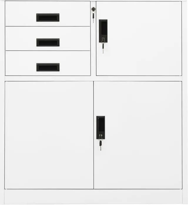 This office cabinet, with a typical filing cabinet design, is ideal for file storage. This office cabinet is made of steel, making it durable as well as easy to clean. With locker inside and adjustable shelf, this file cabinet allows you to neatly sort your files into different categories and keep files safe. Drawers with 3 sections ballbearing runners ensure smooth opening and closing, even under increased load. This cabinet will suit any office decor thanks to its iconic design.