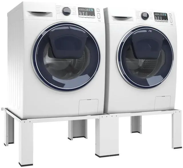 This double washing and drying machine pedestal is designed to keep your washing machines and drying machines off the floor and raise them to a suitable working height, so you dont need to bend too much to load or remove your laundry. This pedestal is made of steel, making it sturdy and each holds the weight of washing machine or drying machine up to 220.5 lb. Thanks to non-slip pads, the washing and drying machines stand stably. The feet are also rubberized, which makes them non-slip and keeps your floors from getting scratches. Additionally, it is suitable for all standard washing and drying machines.