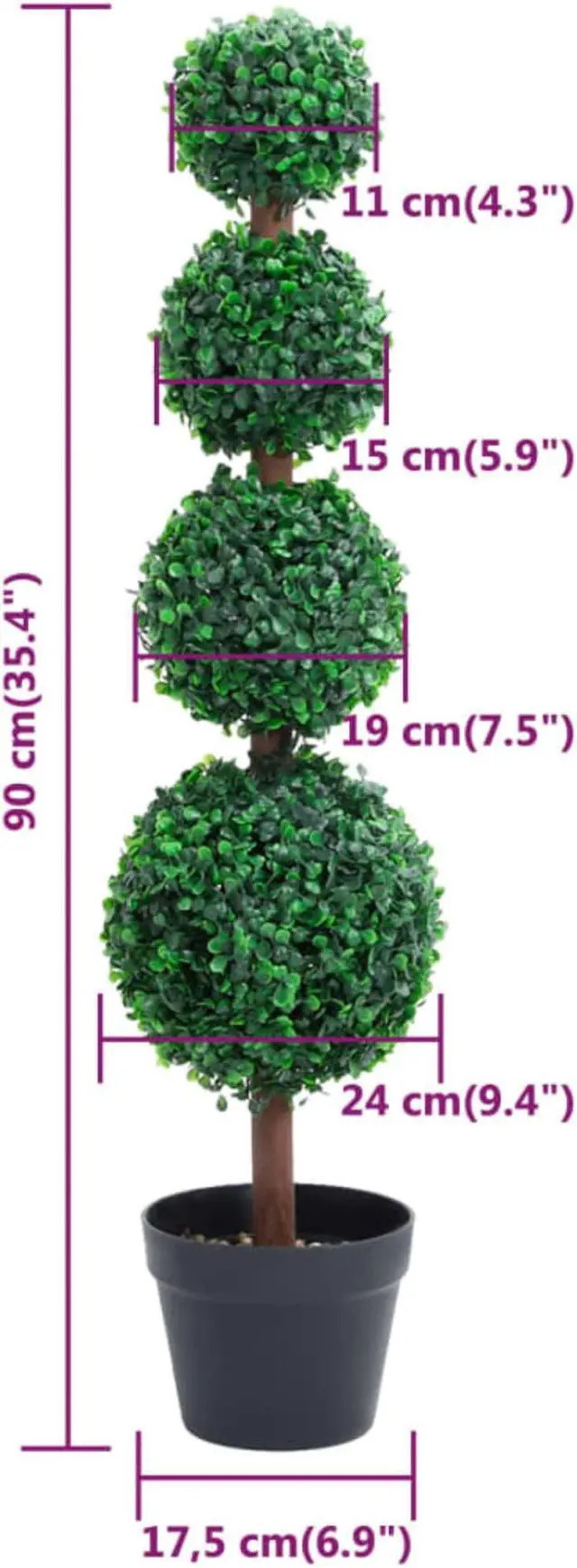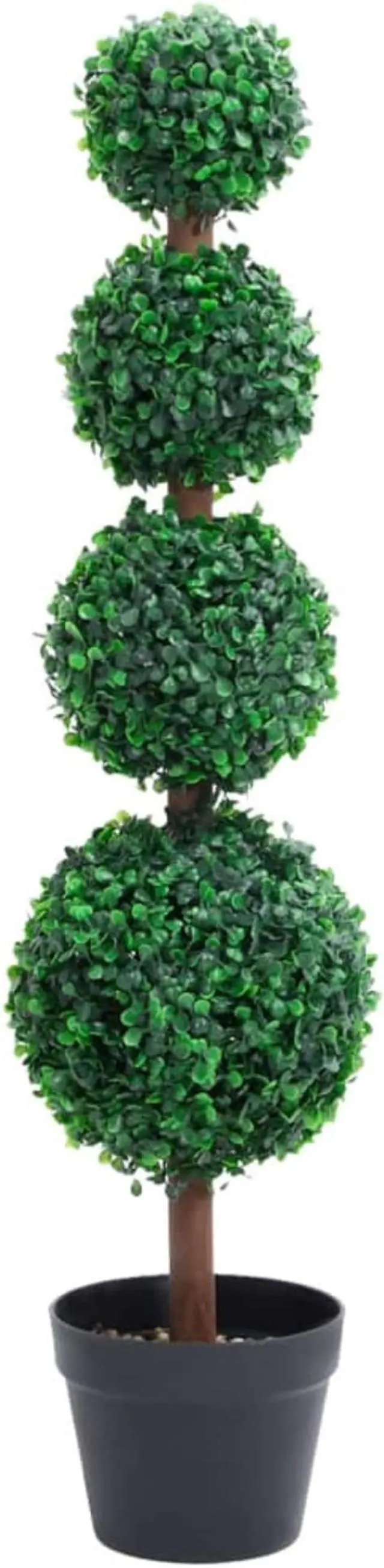 This artificial boxwood plant adds a touch of green to any space, and the quadruple ball shape is meant to be an eye-catcher in your living space! Made of polyethylene, the artificial plant is weather-resistant for long-term outdoor and indoor use. The floral decor features a lush mixed green color and natural texture that looks authentic. Additionally, the solid eucalyptus wood stem adds extra stability. It is ideal for those who want to have some plants in their home but lack the time to care for them.