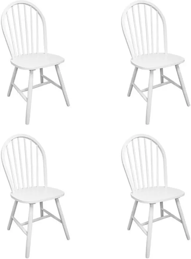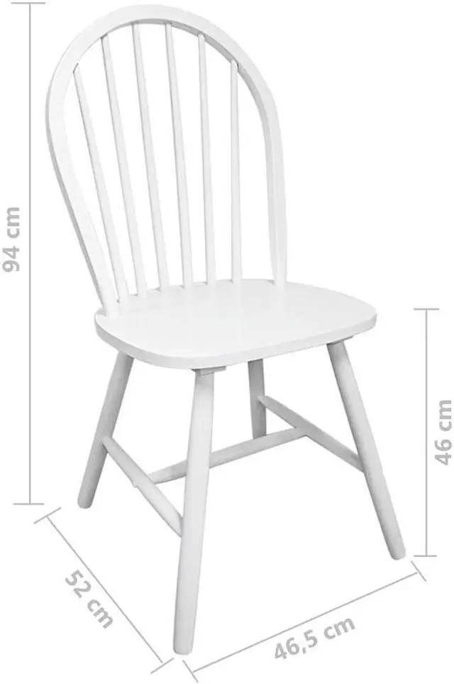 This set, consisting of four classically styled wooden dining chairs, will make a great addition to your dining room or kitchen. The rounded backrests give them rustic charm and add to your seating comfort, while their solid rubber wood construction makes them stable and durable. Delivery includes 4 chairs.