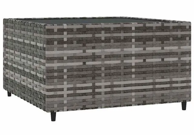 Material: PE rattan, powder-coated steel, fabric (100% polyester), tempered glass