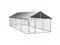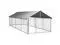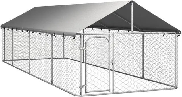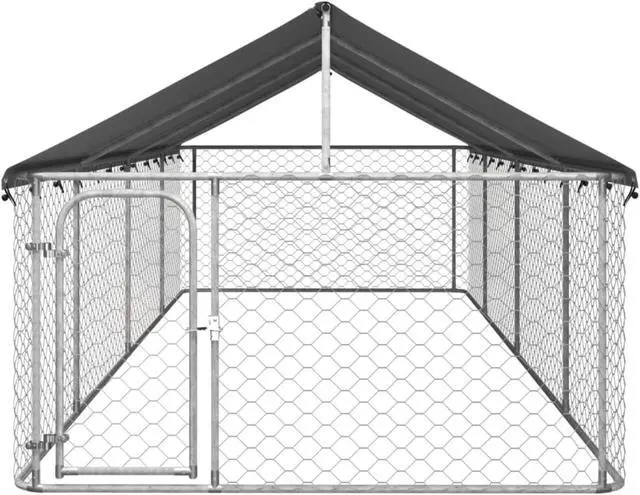 Provide safety, security and comfort for your puppy with this outdoor dog kennel. This versatile dog house features multiple uses: playing, exercising, training, or simply keeping your dog safe. It will be the perfect play paradise for your furry friends! This large dog kennel provides ample exercise space while the chain link mesh all around helps prevent mischief and unexpected accidents while enabling ventilation. Thanks to the sturdy and heavy-duty galvanized steel construction, this quality dog kennel is durable and built to last. Made of 100% polyethylene, the included top canopy is fire-resistant and UV protected, providing protection from sun, rain, snow, as well as other weather conditions. The hinged door with lockable latch system ensures extra security and safety for your dogs.