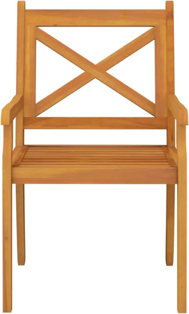 Stylish design: These chairs, featuring a cross design of the backrest and a slatted design of the seat, are meant to be the focus of your space.