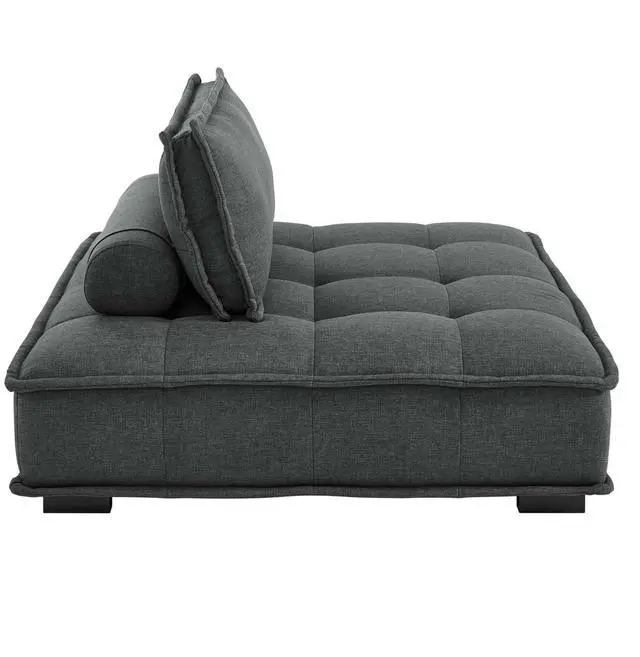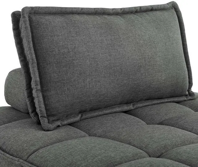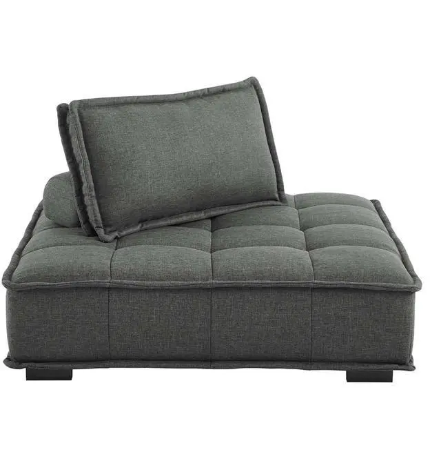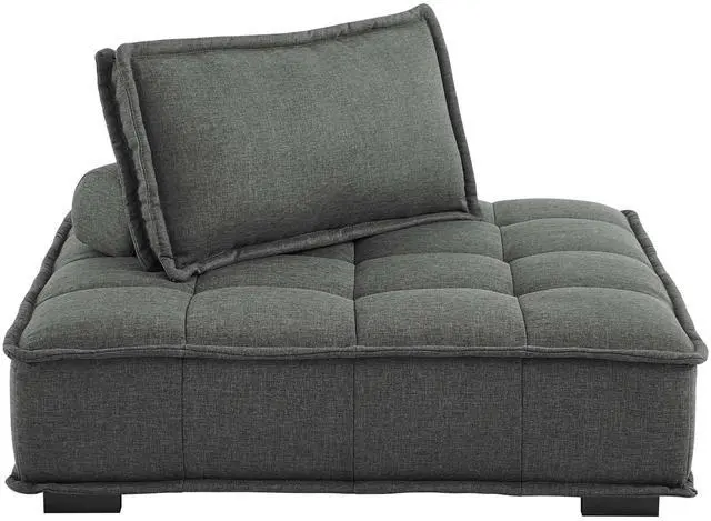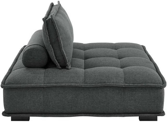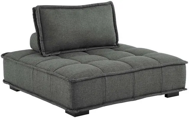 Sprawl out amidst comfort and style on the Saunter Tufted Fabric Armless Chair. With square biscuit tufting, French piping detail, and soft polyester upholstery, this sectional sofa armless chair brings tailored style to your living space or lounge area with its charming low profile silhouette. A removable bolster pillow supporting a seat back cushion offers a comfortable place to rest while watching TV, relaxing, or entertaining. Dense foam padding and a sinuous spring support system grant a premium seating experience for all occasions. This sectional sofa piece rests atop L-shaped rubberwood legs with non-marking foot caps. Armless Chair Weight Capacity: 300 lbs. Set Includes: One - Saunter Tufted Armless Chair