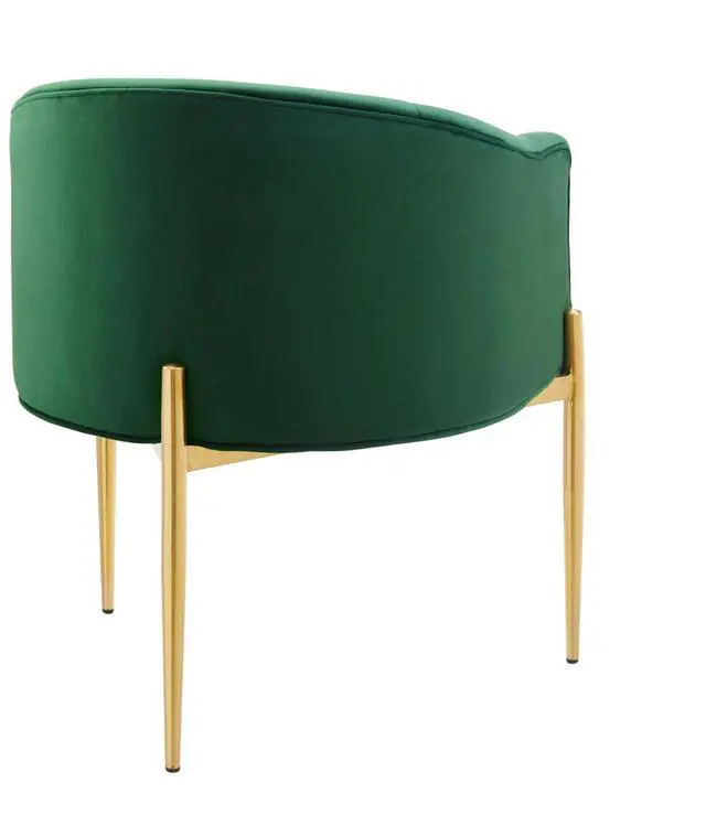 Bring luxe elegance to your living space or dining room with the Savour Tufted Performance Velvet Accent Armchairs. Featuring a sweeping silhouette and updated club chair design, this velvet chair set of two is suited for the dining table or living room, entryway, bedroom, or office as an accent chair. These accent chairs are upholstered in stain-resistant performance velvet upholstery and feature dense foam padding to offer a comfortable seat while dining, working, reading, or relaxing. Resting on chrome gold stainless steel legs, this versatile accent chair set has interior button tufting and a charming curved shape. Chair Weight Capacity: 300 lbs.Set Includes:Two - Savour Tufted Accent Chair