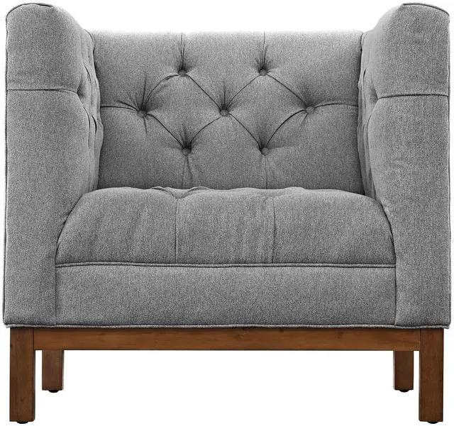 Add vivacity to your dcor with the Panache Collection. Designed to express elegance and comfort, Panache comes outfitted with deeply tufted buttons and plush cushions for a timeless charm. Constructed with solid wood legs, fine fabric upholstering, and a reinvented mid-century style design with a dash of vintage charm, enhance your living room, lounge or meeting area with the Panache Collection.