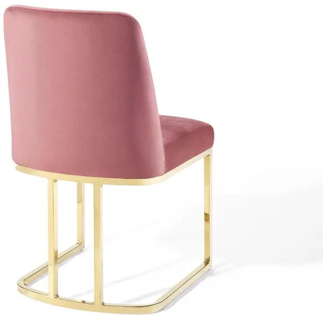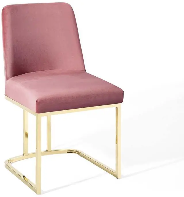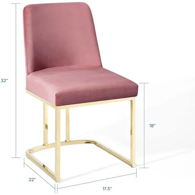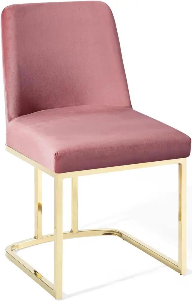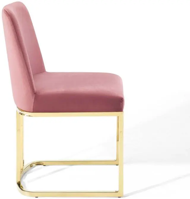 Striking lines and simple form blend to produce the Amplify Glam Deco Performance Velvet Upholstered Sled Base Dining Chair. A boldly flowing gold stainless steel sled base supports the premium seating experience produced by the soft and stain-resistant performance velvet polyester upholstery for a dining chair suitable for a variety of decor styles. Dense foam padding and gentle curves accent the glam deco elegance of the Amplify Dining Side Chair. Whether the Amplify Accent Chair is gracing your dining room, living room, lounge room, or office, visitors and guests will comment on this eye-catching addition. Chair Weight Capacity: 331 lbs. Assembly Required.Set Includes:One - Amplify Sled Base Dining Side Chair