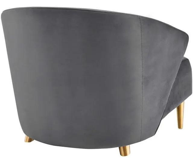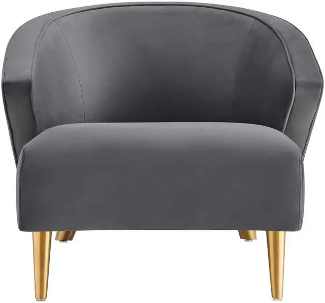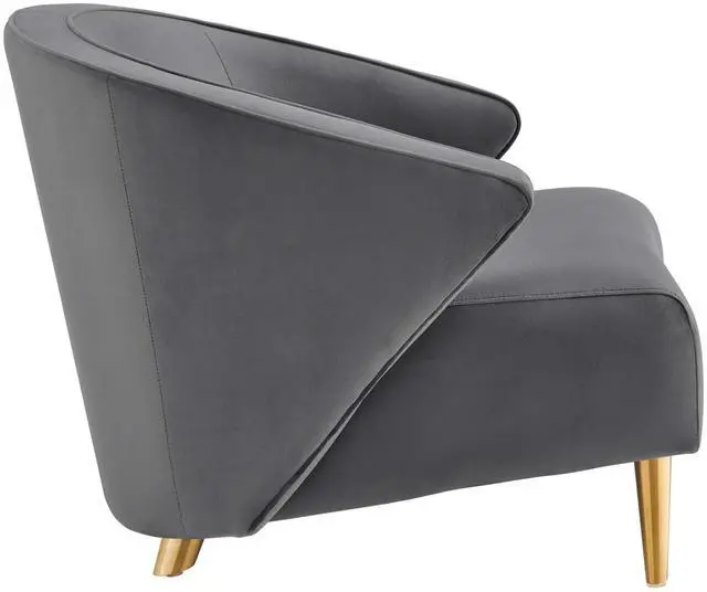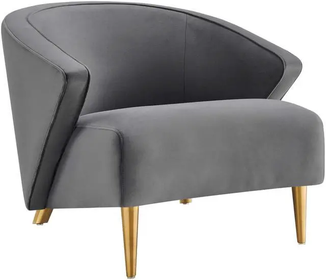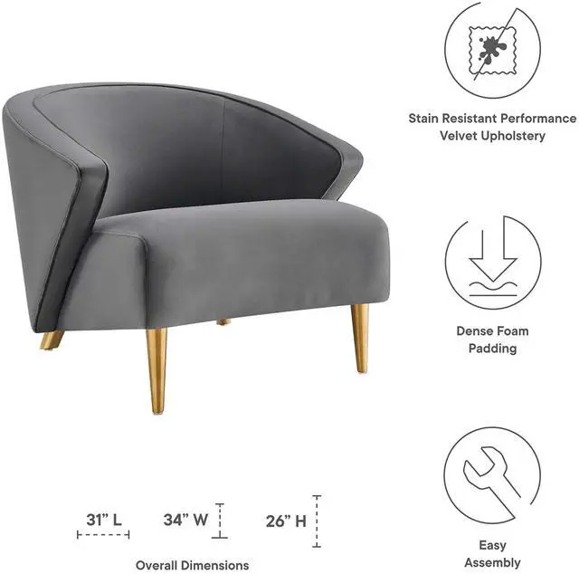 Endless comfort and structural elegance are the distinguishing features of the Odyssey Performance Velvet Armchair. This mid-century modern accent chair, standing impressively on brushed gold stainless steel legs, transforms entryways, bedrooms, and lounge spaces. Smoothly upholstered in stain-resistant performance velvet fabric, the Odyssey living room armchair is highly appealing in mid-century modern or eclectic decors. Ensconce yourself in the superbly contoured backrest and seat made plush with dense foam padding and a webbed support system. Odyssey entices for afternoon naps or pre-bedtime reading. This mid-century armchair is fitted with non-marking foot glides to protect your floors. Assembly required. Weight Capacity: 331 lbs. Set Includes: One - Odyssey Armchair