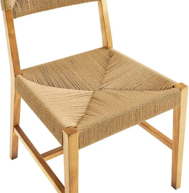 Introduce calm coastal style and modern farmhouse charm to your dining space with the Bodie Dining Side Chair. Featuring a woven paper rope backrest and seat, this dining chair brings alluring texture to a dining table or to the living room as an accent chair. This side chair is crafted with a durable elm wood frame with stretchers connecting the legs for added interest. Includes plastic foot glides to protect flooring. Weight Capacity: 330 lbs. Set Includes: One - Bodie Wood Dining Chair