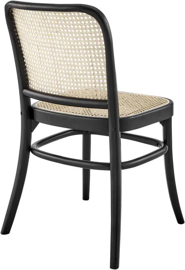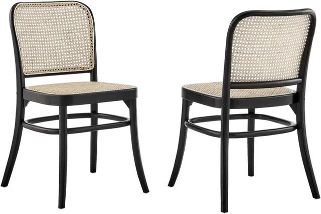 Blend rustic farmhouse charm and coastal serenity in your dining space with the Winona Dining Side Chair Set. Featuring a woven rattan cane backrest and seat, this dining chair set instills vintage modernity around your dining table or as accent chairs in your living space. This dining side chair set is complete with a durable elm wood frame with rounded edges and a stretcher for added interest. Includes non-marking foot caps. Weight Capacity: 330 lbs. Set Includes: Two - Winona Wood Dining Side Chair Set of 2