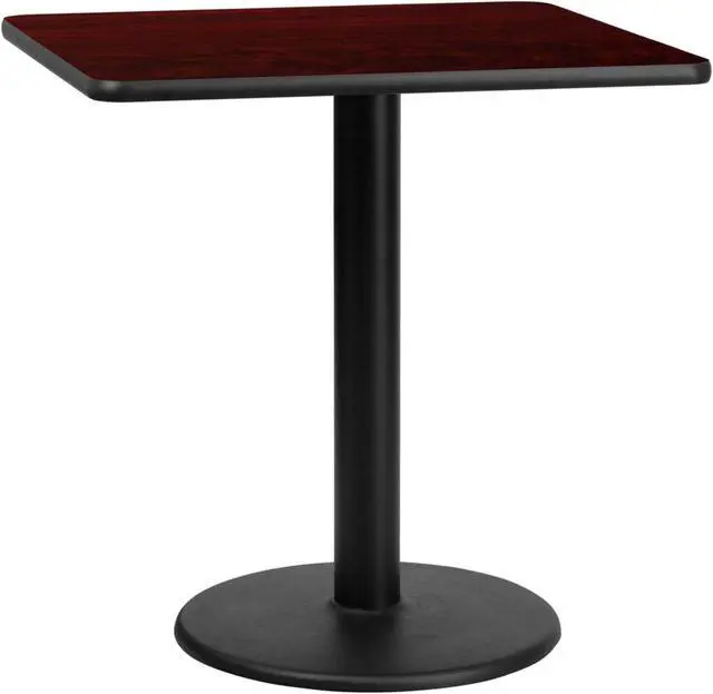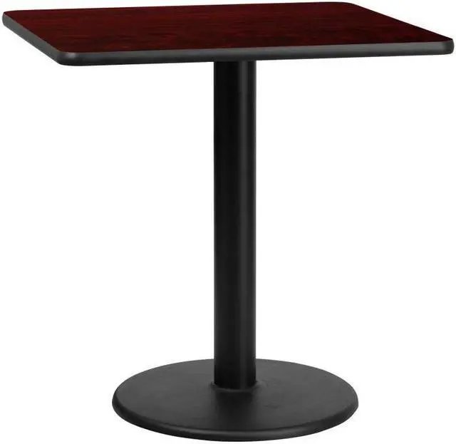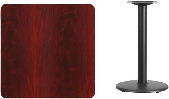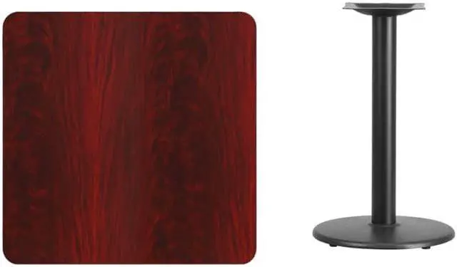Complete your restaurant, break room or cafeteria with this table top and base configuration. This set is designed for commercial use to withstand the daily rigors in the hospitality industry. This set will also make a great option for your home as a dining table or in the rec room. The reversible black or mahogany top allows you to choose your color of choice and then affix to the base. Surface is heat, scratch and moisture resistant. Use a mild detergent and water, dry clean to keep your tables spotless. Whether you are just starting your business or upgrading your furniture this table set will complete the look.Product Dimension-30"W x 30"D x 31.125"H