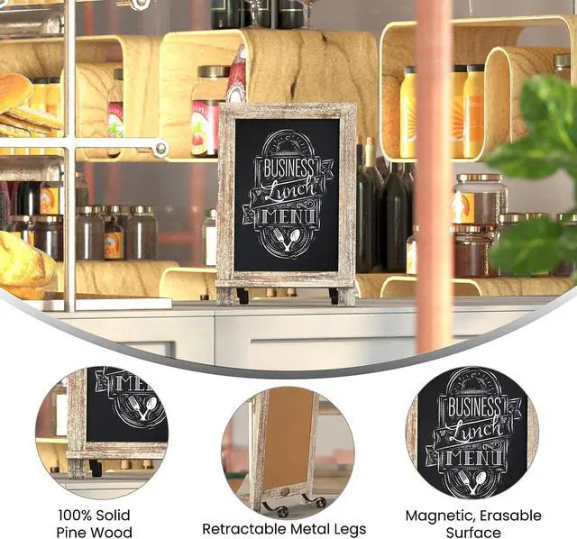 Leave reminders for family, post the weekly menu, or announce special events with this freestanding magnetic chalkboard for the table or countertop. The non-porous porcelain steel chalkboard surface cleans easily with a damp cloth so you can change your message as often as you like. Not only does this vintage board look great, the foldable metal scrolled legs allow you to convert it to a wall mounted message center.