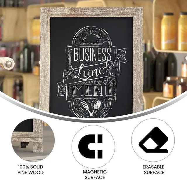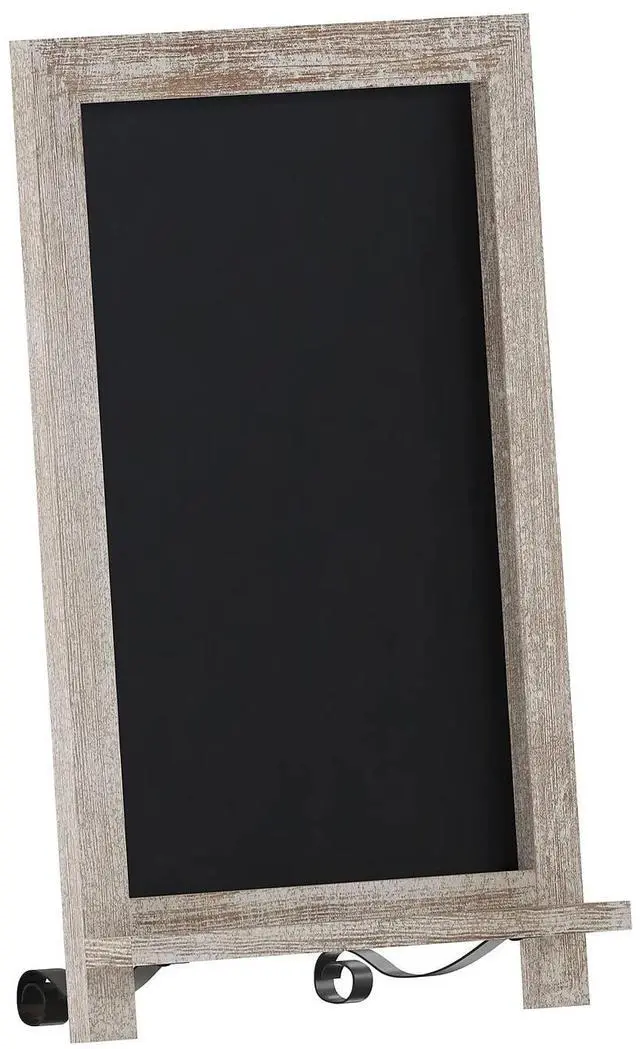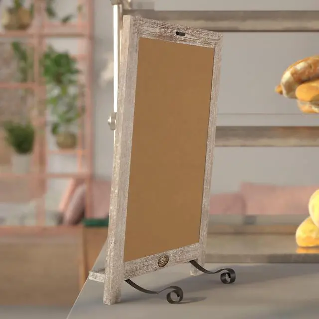Leave reminders for family, post the weekly menu, or announce special events with this freestanding magnetic chalkboard for the table or countertop. The non-porous porcelain steel chalkboard surface cleans easily with a damp cloth so you can change your message as often as you like. Not only does this vintage board look great, the foldable metal scrolled legs allow you to convert it to a wall mounted message center.