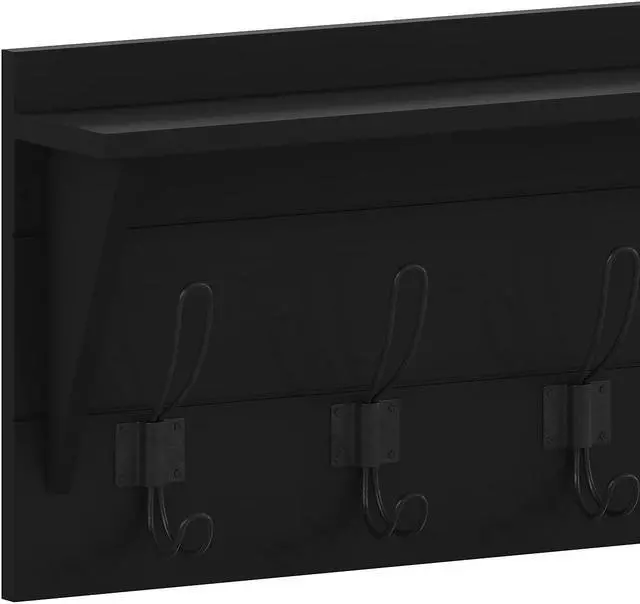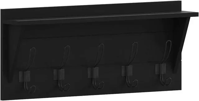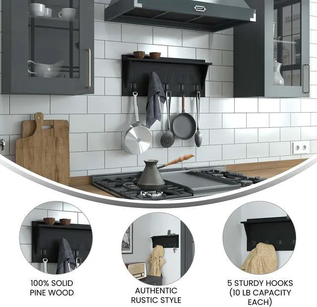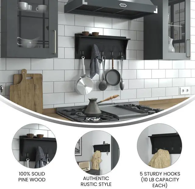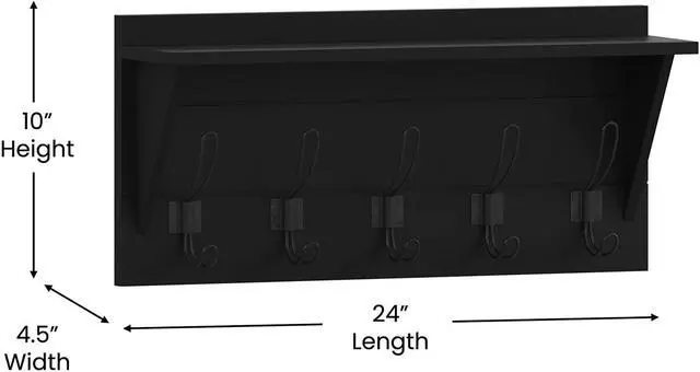 Add some much needed vertical storage as well as great style to your entryway, bedroom, or bathroom with this wall mounted storage shelf. Featuring 5 rustic double hooks capable of holding up to 10 pounds, you can hang your keys, umbrellas, or bags on the lower part and coats, scarves, or hand towels on the upper section. This mounted shelf also boasts an upper shelf to display photos or decor and can help keep your clutter in order while lending on-trend sophistication to any room. Sturdy, inlayed hanging hardware and included screws and wall anchors allow you to have your new wall decor up and ready to go in 30 minutes or less.