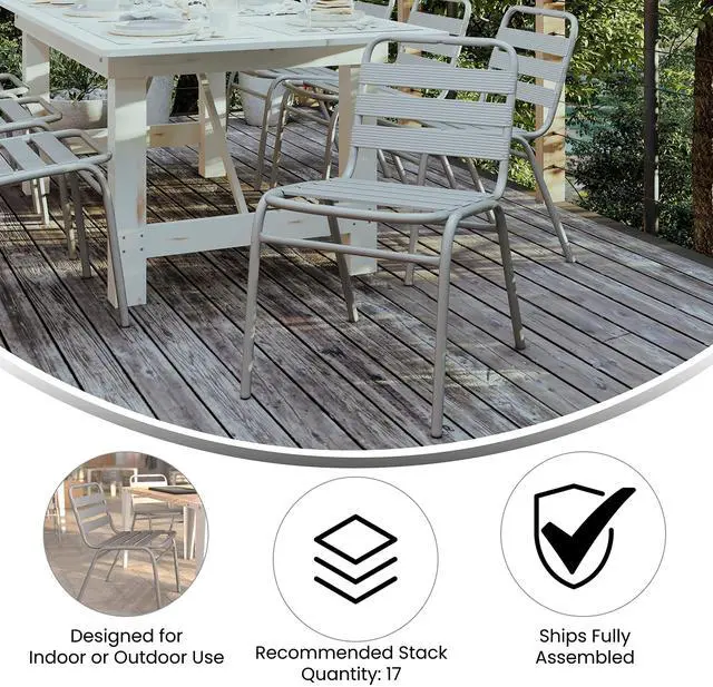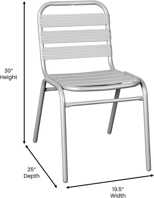 If you need a great looking, armless chair that will hold up in high traffic establishments then this Indoor-Outdoor Metal Restaurant Stack Chair is a great find. This popular piece will look great inside your eatery, on the sidewalk outside your bistro or on your patio by the pool. Constructed of lightweight Metal, this chair is perfect for stacking for storage. Support braces under the seat add increased strength and stability. In fact, this sturdy chair will hold up to 352 pounds. Plastic floor glides protect your floor by sliding smoothly when you need to move the chair. Designed for both commercial and residential use, this stylish Metal chair is a great seating choice.