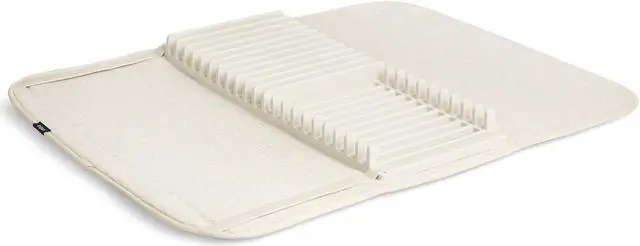 DISH DRYING RACK & MAT IN ONE: UDry combines a dish drying rack and dish drying mat in one so you can neatly stack and organize your dishes, glasses, cutlery, pots, pans and more, allowing them to air-dry while you get on with your daySUPER-ABSORBENT MICROFIBER MAT: The perfect blend of form and function, UDry's microfiber mat absorbs water from drying dishes while at the same time protecting your counter-top from scratches and water buildup. Mat is machine-washableREMOVABLE DISH RACK TRAY: Versatile and durable, the molded plastic (BPA-free) dish drainer tray can be easily secured or removed and is dishwasher safe (top rack only) for easy cleaning