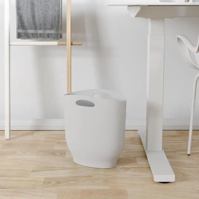Featuring flowing contemporary lines, this ultra-sleek trash can is ideal for multiple rooms in the home. Harlo's slim design allows it to tuck into multiple spaces seamlessly, whether it's beside a toilet, under sink cabinetry, or a desk. Despite being slim in size, Harlo holds 2.4 gallons (9 liters). Its handles make for easy portability and should you wish to line it, Harlo fits a grocery store or small-sized garbage bag. This sleek trash can is made of polypropylene making it easy to clean (simply wipe it down with a damp cloth). It has a satin outer finish and shiny inner finish. Harlo measures 12 x 6 x 12 (32 x 16 x 32.5 cm).