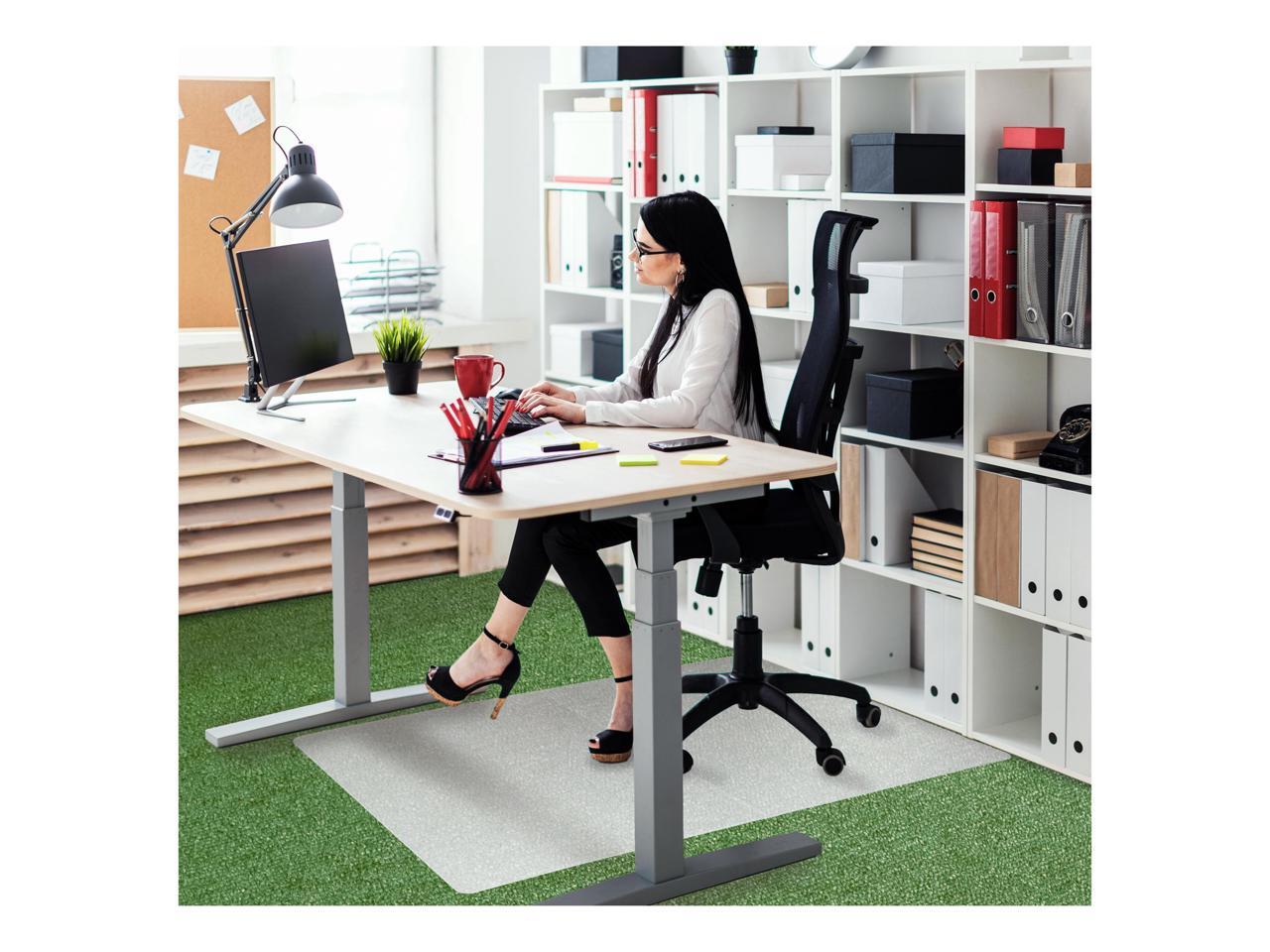 - The natural translucent finish and embossed top surface are ideal for obscuring worn and damaged flooring. Prevents damage and wear to hard floors often caused by chair casters and foot wear. Ideal for use with a computer desk or workstation in the home or office