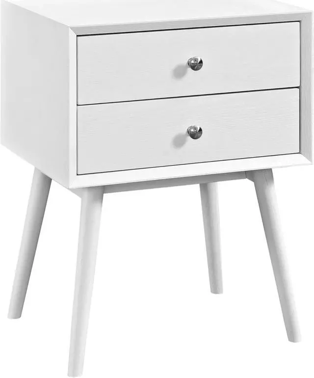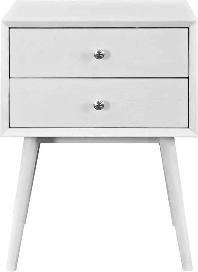 Transform your bedroom into a mid-century sanctuary with the Dispatch Nightstand. Made of high-grade MDF particleboard with wood grain veneer, Dispatch features two full-extension drawers with generous storage, polished metal knob handles, and four splayed dowel legs with non-marking foot caps. Display and store your favorite bedroom table lamp, picture stand, keys, glasses, book, journal, and alarm clock on this iconically designed nightstand inspired by mid-century modern furniture design aesthetics.Set Includes:One - Dispatch Nightstand