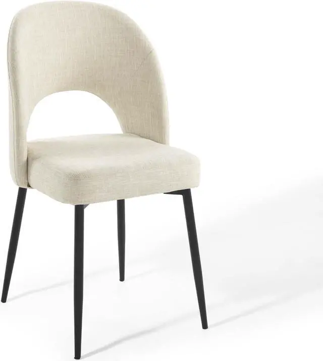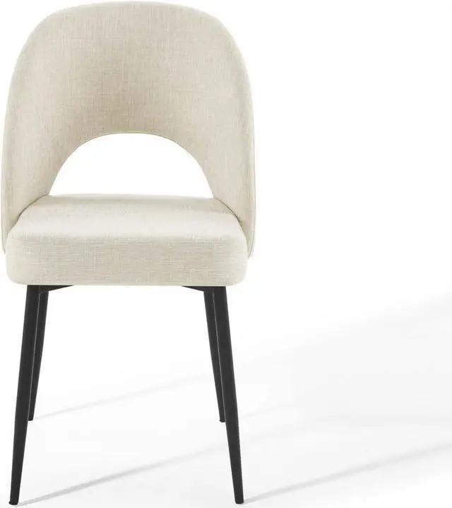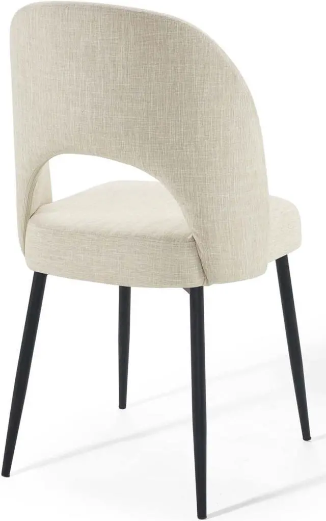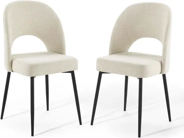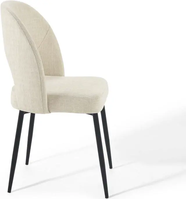 Revel in a stylish update on a classic design. Comprised of densely padded foam that supports the durable and soft fabric upholstery, the Rouse Upholstered Fabric Dining Side Chair offers a luxurious update to mid-century design. This glamorous dining chair is constructed from bentwood and sits atop four matte black stainless steel splayed and tapered legs. A comfortable fabric dining chair with open back design, experience the smooth curves and subtle embrace of this versatile dining room side chair. Chair Weight Capacity: 331 lbs.Set Includes:Two - Rouse Dining Side Chair