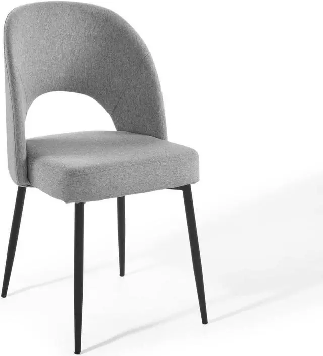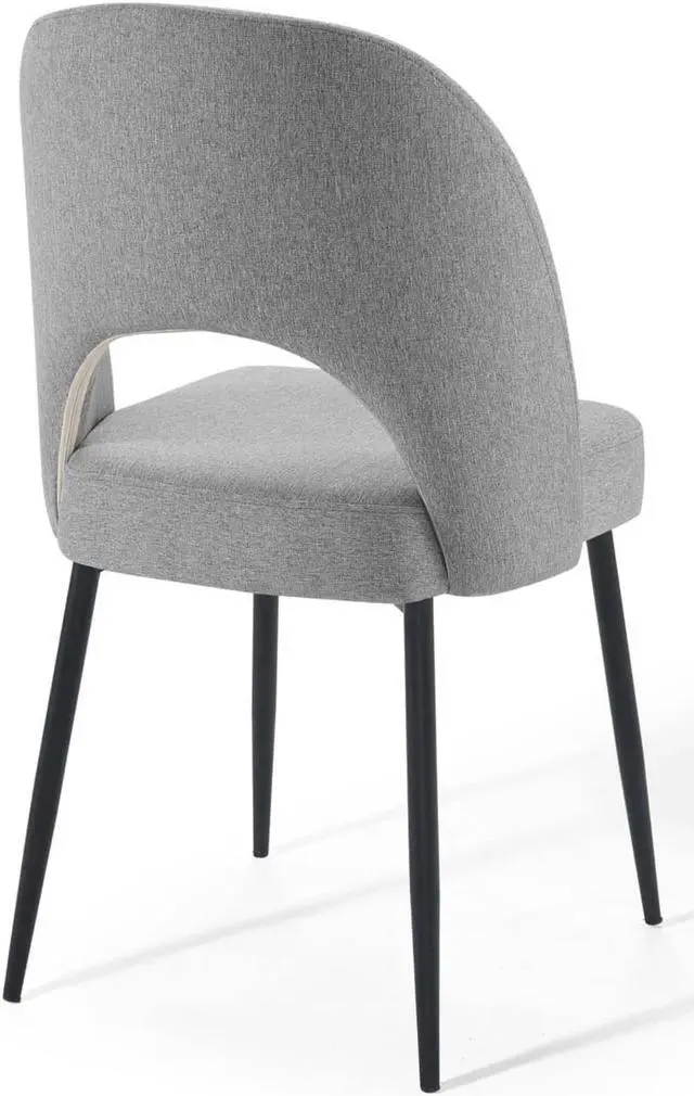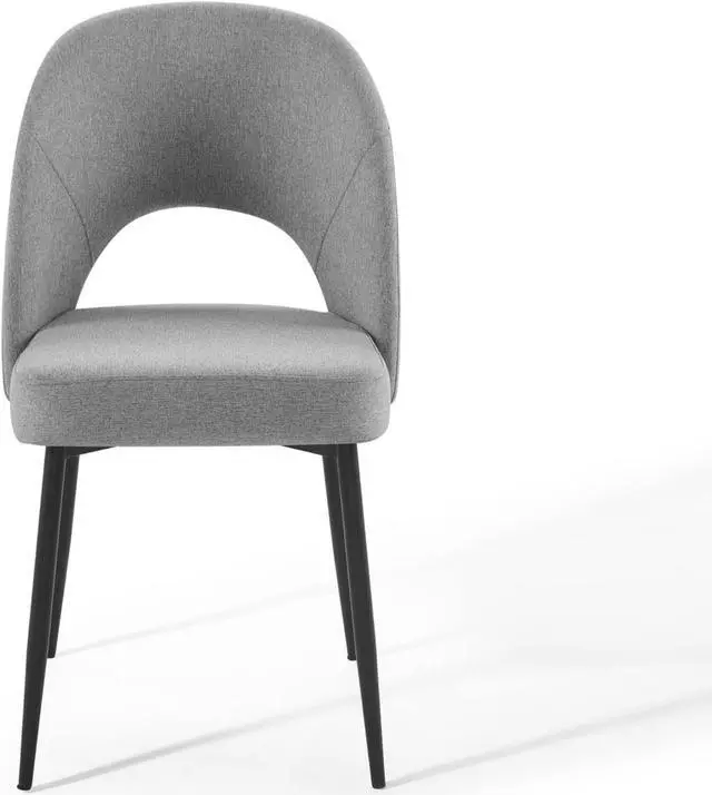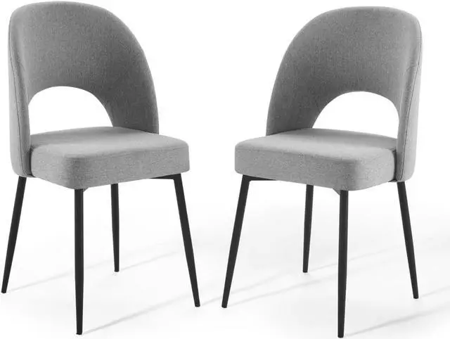 Revel in a stylish update on a classic design. Comprised of densely padded foam that supports the durable and soft fabric upholstery, the Rouse Upholstered Fabric Dining Side Chair offers a luxurious update to mid-century design. This glamorous dining chair is constructed from bentwood and sits atop four matte black stainless steel splayed and tapered legs. A comfortable fabric dining chair with open back design, experience the smooth curves and subtle embrace of this versatile dining room side chair. Chair Weight Capacity: 331 lbs.Set Includes:Two - Rouse Dining Side Chair