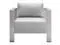 Enjoy your patio or backyard leisure time with the strong and durable Shore Outdoor Aluminum Armchair. Made with an anodized brushed aluminum frame and non-marking black plastic foot caps, Shore comes outfitted with resilient Sunbrella fabric canvas cushions tested to last through all weather conditions. The Shore Outdoor Aluminum Armchair complements your casual gatherings with a look and functionality you can rely on.Set Includes:One - Shore Sunbrella Fabric Aluminum Armchair
