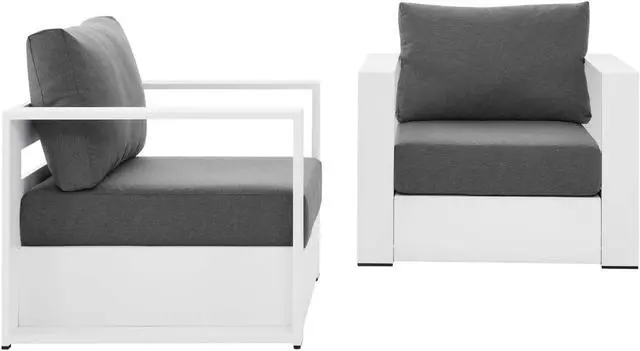 Enliven your alfresco spaces with the Tahoe Aluminum Outdoor Patio Armchair. This modern outdoor patio chair is constructed with well-crafted, durable powder-coated aluminum, dispensing contemporary elegance in your outdoor lounge spaces. With dense foam padding for sustaining comfort before and after a dip, Tahoe is perfect for poolside lounging with a sunproof, water-resistant fabric-covered seat and backrest. The removable, stain-resistant cushions render this outdoor armchair low maintenance and high performing. Tahoe makes an accommodating weatherproof patio chair for al fresco daydreaming. This durable outdoor armchair features non-marking foot glides to protect your deck or patio floor and comes with easy-to-follow assembly instructions. Weight Capacity: 331 lbs. Set Includes: Two - Tahoe Powder Armchair