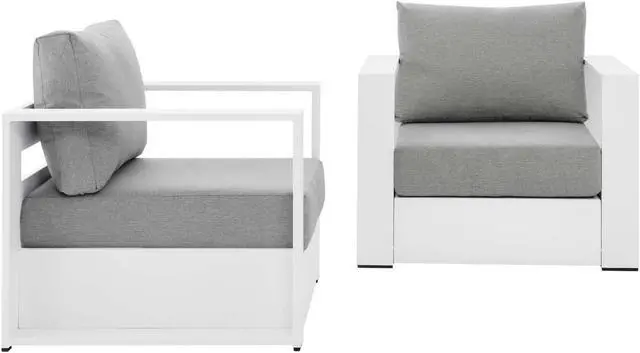 Enliven your alfresco spaces with the Tahoe Aluminum Outdoor Patio Armchair. This modern outdoor patio chair is constructed with well-crafted, durable powder-coated aluminum, dispensing contemporary elegance in your outdoor lounge spaces. With dense foam padding for sustaining comfort before and after a dip, Tahoe is perfect for poolside lounging with a sunproof, water-resistant fabric-covered seat and backrest. The removable, stain-resistant cushions render this outdoor armchair low maintenance and high performing. Tahoe makes an accommodating weatherproof patio chair for al fresco daydreaming. This durable outdoor armchair features non-marking foot glides to protect your deck or patio floor and comes with easy-to-follow assembly instructions. Weight Capacity: 331 lbs. Set Includes: Two - Tahoe Powder Armchair