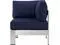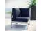 Enjoy your patio or backyard leisure time with the strong and durable Shore Outdoor Aluminum Corner Armchair. Made with an anodized brushed aluminum frame and non-marking black plastic foot caps, Shore comes outfitted with resilient fabric canvas tested to last through all weather conditions. The Shore Outdoor Aluminum Armless Chair complements your casual gatherings with a look and functionality you can rely on.