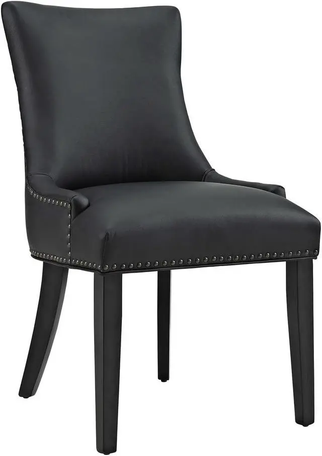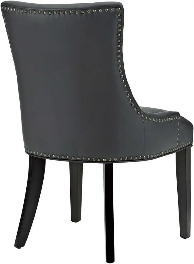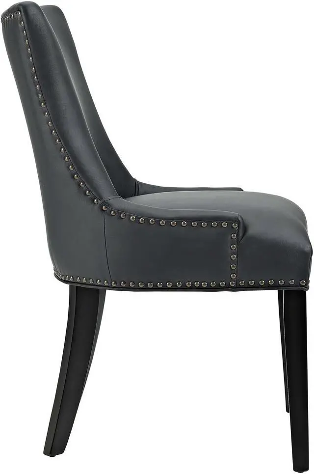 Bequeath distinction with the Marquis Dining Chair. Charm and elegance adorn this luxurious button tufted dining chair complete with sleek curves and antique copper nailhead trim. Featuring dense foam padding, fine vinyl upholstery, solid wood frame, and non-marking foot glides, Marquis is an elegant dining chair perfect for the modern home.
