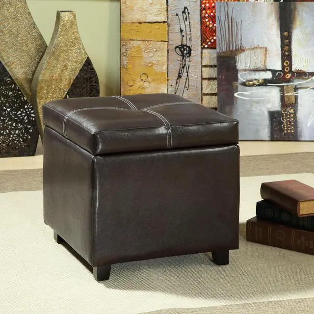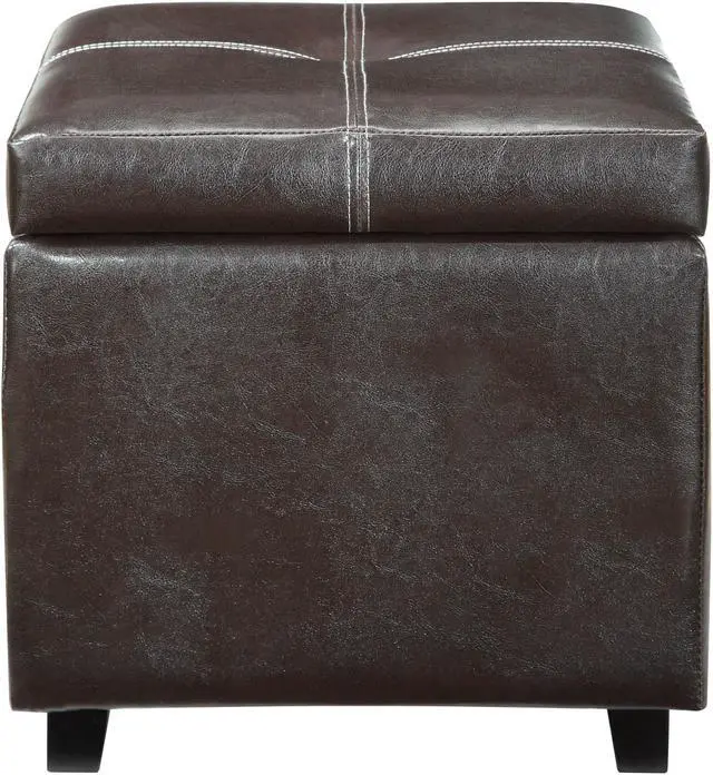 Keep your bounty close at hand with the Treasure Ottoman. A rich espresso finish with piped edging lends an Old World style to an otherwise modern piece. Prop your feet up, or stow away your possessions, with durable simplicity positioned on four wooden legs.