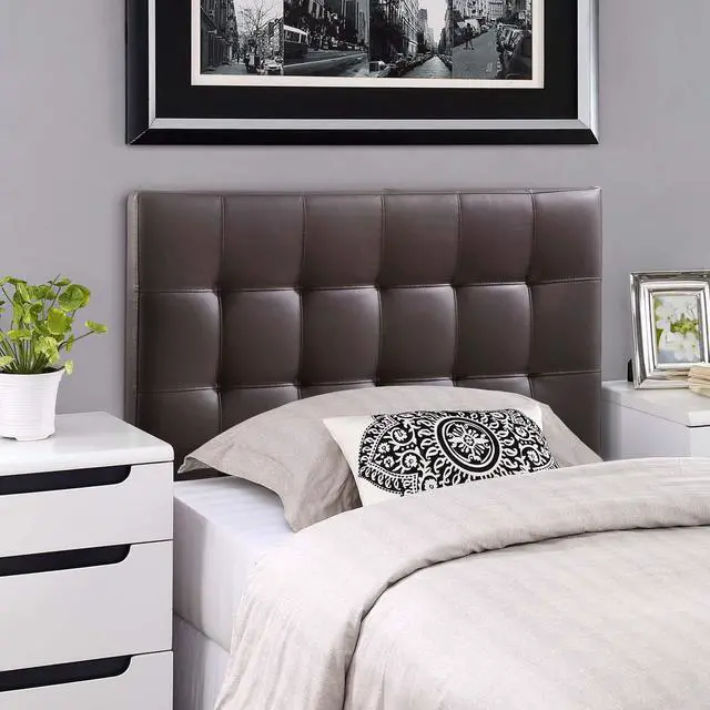 Add elegance to your bedroom with the Lily tufted headboard. Designed with just the right amount of grace, Lily is made from fiberboard, plywood, and fine vinyl upholstery for a construction that is both lightweight and long-lasting. Perfect for contemporary and modern bedrooms, sleep soundly with a piece that imparts a sense of tranquility amidst an impressive backdrop of style. Fits twin size beds.
