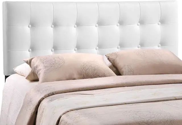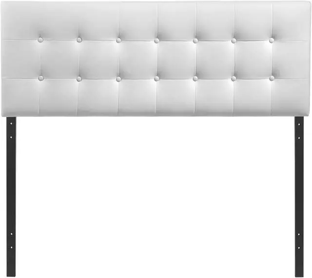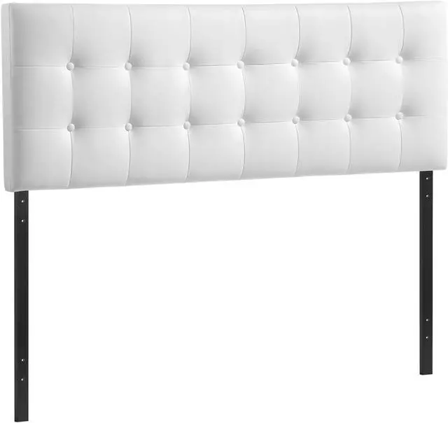 Add elegance to your bedroom with the Emily tufted button headboard. Designed with just the right amount of grace, Emily is made from fiberboard, plywood, and smooth vinyl upholstering for a construction that is both lightweight and long-lasting. Perfect for contemporary and modern bedrooms, sleep soundly with a piece that imparts a sense of tranquility amidst an impressive backdrop of style. Fits king size beds.
