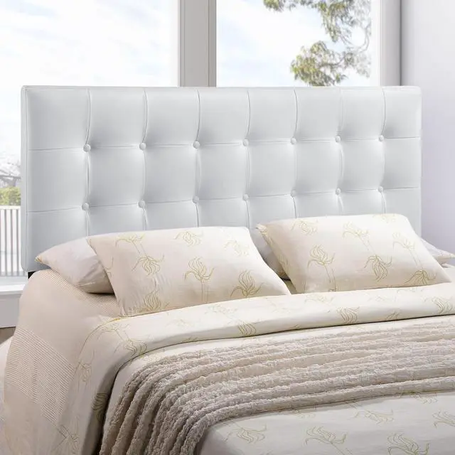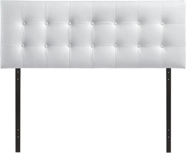 Add elegance to your bedroom with the Emily tufted button headboard. Designed with just the right amount of grace, Emily is made from fiberboard, plywood, and smooth vinyl upholstering for a construction that is both lightweight and long-lasting. Perfect for contemporary and modern bedrooms, sleep soundly with a piece that imparts a sense of tranquility amidst an impressive backdrop of style. Fits queen size beds.