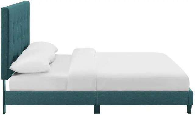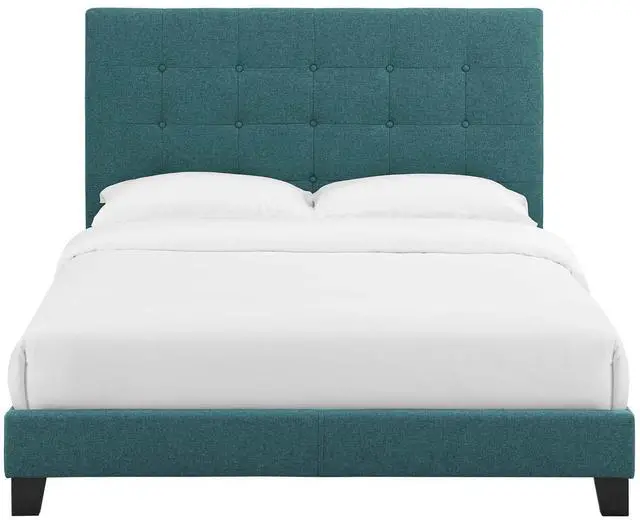 Clean lines, a straightforward profile, and classic button tufting define the Melanie Queen Platform Bed. Designed with chic elegance and contemporary style, Melanie's base and headboard come upholstered in soft polyester fabric, while the sturdy wood frame and legs offer lasting durability. Eliminating the need for a box spring, this platform bed is complete with a wood slat support system and reinforced center beam creating the perfect mattress foundation for memory foam, spring, latex, and hybrid mattresses. A sleek and sophisticated centerpiece to a master suite or guest room, effortlessly transform bedroom decor with the luxe look of this modern platform bed.