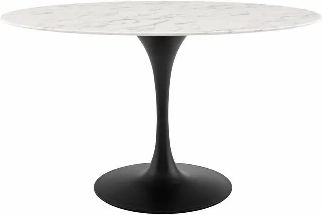 Reflecting a seamless organic shape and timeless form, the Lippa dining table has become a symbol of modernism for over the past 60 years. Before its release, homes were filled with clunky remnants of an industrial age long gone by. But in order to advance into the new world, homes first had to transition from the traditional square table, into a piece that connoted progress. The base and dimensions are true to the original specifications, while the tables oval-shaped artificial marble top, and tapered metal base, are carefully lacquered with a scratch and chip resistant finish.Set Includes:One - Lippa 54" Oval Dining Table