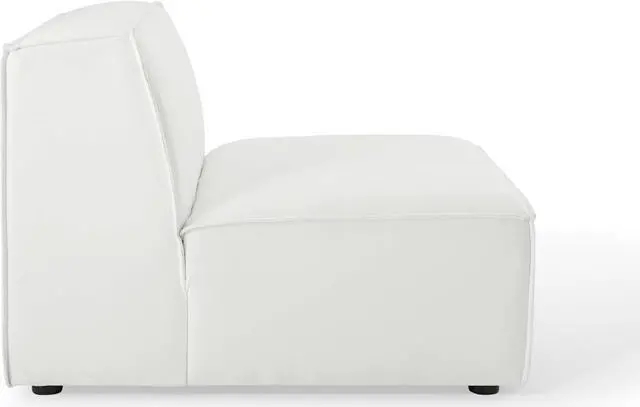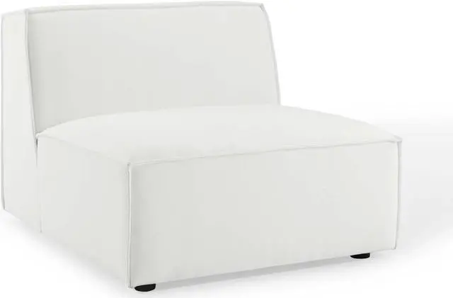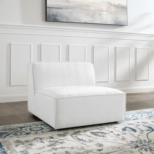 Create your custom living room and lounge area with the Restore Upholstered Fabric Sectional Sofa Armless Chair. The Restore Armless Chair appeals to minimalist elegance with a crisp design and broad lines accented with French piping details and polyester fabric upholstery. Dense foam padding and a pocket coil spring system in the cushions offer a luxe seating experience for your living room and lounge. The Restore Living Room Sofa Chair is solidly constructed from plywood and wood with non-marking foot caps to protect flooring and connectors between modular pieces. Chair Weight Capacity: 440 lbs.Set Includes:One - Restore Sectional Sofa Armless Chair