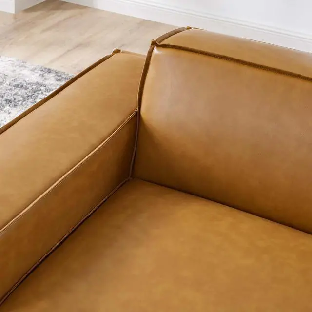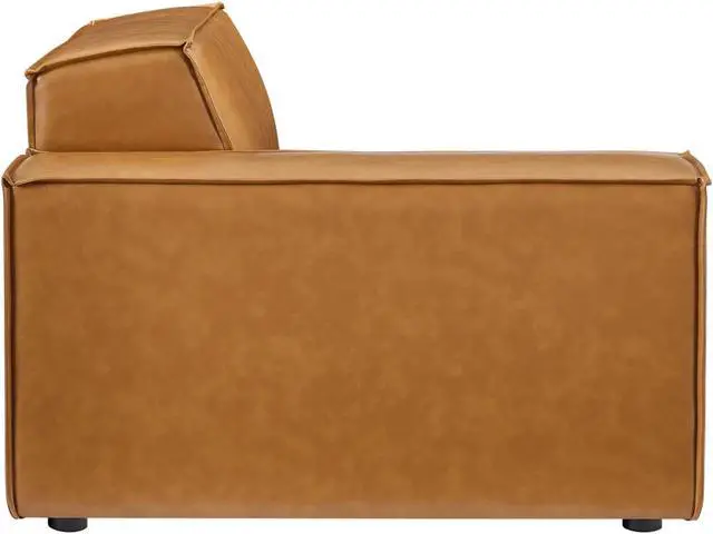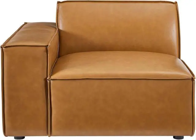 Create your custom living room and lounge area with the Restore Vegan Leather Left-Arm Sectional Sofa Chair. The Restore Left-Arm Chair appeals to minimalist elegance with a crisp design and broad lines accented with French piping details and vegan leather upholstery. Dense foam padding and a pocket coil spring system in the cushions offer a luxe seating experience for your living room and lounge. The Restore Living Room Sofa Chair is solidly constructed from plywood and wood with non-marking foot caps to protect flooring and connectors between modular pieces. Chair Weight Capacity: 440 lbs.Set Includes:One - Restore Left-Arm Sectional Sofa Chair