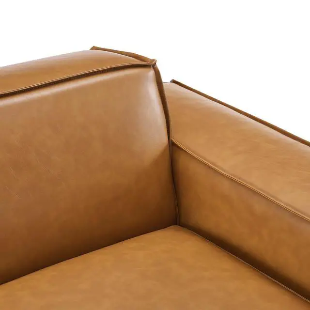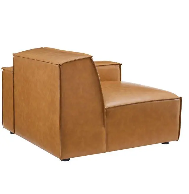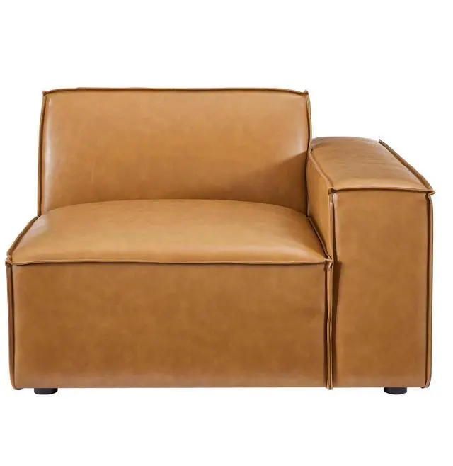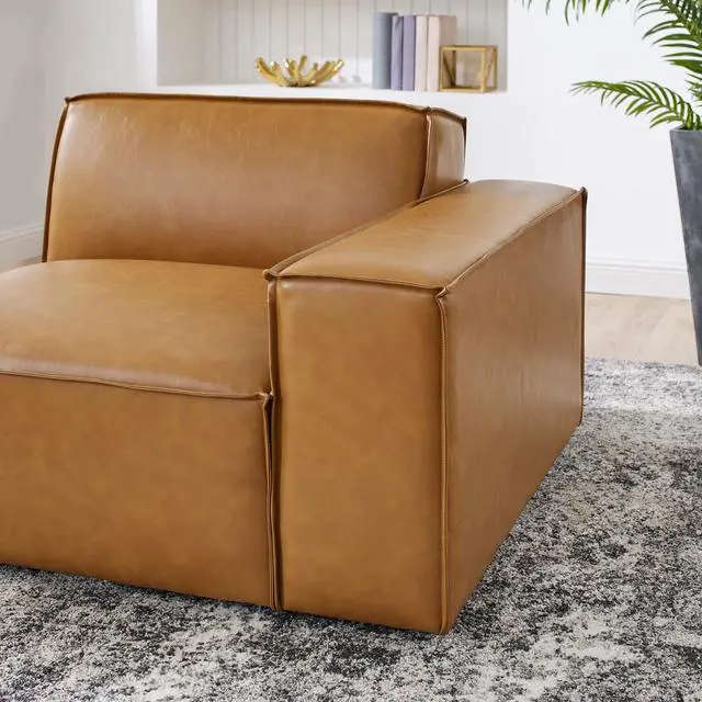 Create your custom living room and lounge area with the Restore Vegan Leather Right-Arm Sectional Sofa Chair. The Restore Right-Arm Chair appeals to minimalist elegance with a crisp design and broad lines accented with French piping details and vegan leather upholstery. Dense foam padding and a pocket coil spring system in the cushions offer a luxe seating experience for your living room and lounge. The Restore Living Room Sofa Chair is solidly constructed from plywood and wood with non-marking foot caps to protect flooring and connectors between modular pieces. Chair Weight Capacity: 440 lbs.Set Includes:One - Restore Right-Arm Sectional Sofa Chair