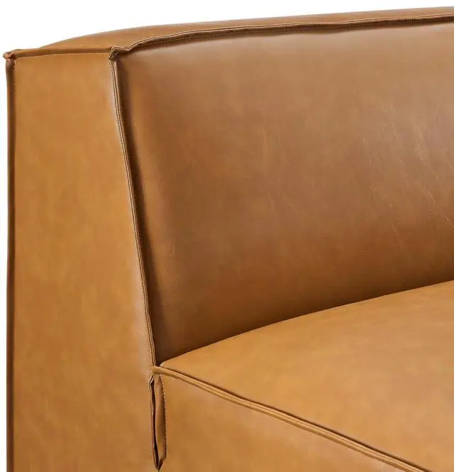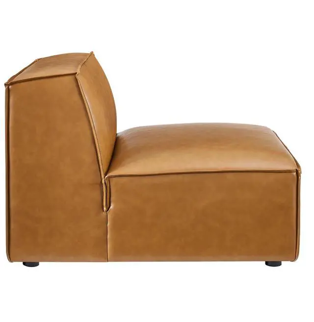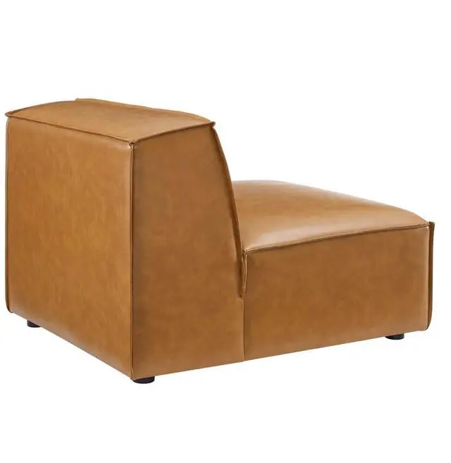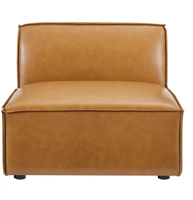 Create your custom living room and lounge area with the Restore Vegan Leather Sectional Sofa Armless Chair. The Restore Armless Chair appeals to minimalist elegance with a crisp design and broad lines accented with French piping details and vegan leather upholstery. Dense foam padding and a pocket coil spring system in the cushions offer a luxe seating experience for your living room and lounge. The Restore Living Room Sofa Chair is solidly constructed from plywood and wood with non-marking foot caps to protect flooring and connectors between modular pieces. Chair Weight Capacity: 440 lbs.Set Includes:One - Restore Sectional Sofa Armless Chair
