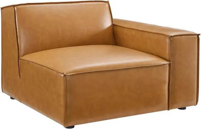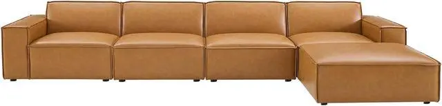 Create your custom living room and lounge area with the Restore Vegan Leather 5-Piece Sectional Sofa. The Restore Sectional Sofa appeals to minimalist elegance with a crisp design and broad lines accented with French piping details and vegan leather upholstery. Dense foam padding and a pocket coil spring system in the cushions offer a luxe seating experience for your living room and lounge. The Restore Living Room Sectional Sofa is solidly constructed from plywood and wood with non-marking foot caps to protect flooring and connectors between modular pieces. Each Piece Weight Capacity: 440 lbs.Set Includes:One - Restore Left-Arm Sectional Sofa ChairOne - Restore OttomanOne - Restore Right-Arm Sectional Sofa ChairTwo - Restore Sectional Sofa Armless Chair