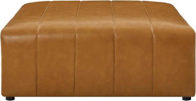 Indulge in comfort and relaxation by creating a custom living room and lounge area with the Bartlett Vegan Leather Ottoman. Featuring subtle channel tufting, rounded corners, and durable vegan leather upholstery, this ottoman brings retro modern style and contemporary allure to your living space. Dense foam padding and a pocket coil spring system in the cushions offer a luxe seating experience with premium support and comfort. With a sturdy frame crafted from solid wood and plywood, this living room ottoman features modular connectors to keep each sectional sofa piece secure and non-marking foot caps to protect flooring. Ottoman Weight Capacity: 331 lbs.Set Includes:One - Bartlett Ottoman