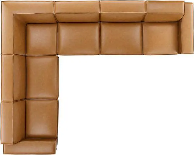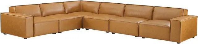 Create your custom living room and lounge area with the Restore Vegan Leather 6-Piece Sectional Sofa. The Restore Sectional Sofa appeals to minimalist elegance with a crisp design and broad lines accented with French piping details and vegan leather upholstery. Dense foam padding and a pocket coil spring system in the cushions offer a luxe seating experience for your living room and lounge. The Restore Living Room Sectional Sofa is solidly constructed from plywood and wood with non-marking foot caps to protect flooring and connectors between modular pieces. Each Piece Weight Capacity: 440 lbs.Set Includes:One - Restore Left-Arm Sectional Sofa ChairOne - Restore Right-Arm Sectional Sofa ChairOne - Restore Sectional Sofa Corner ChairThree - Restore Sectional Sofa Armless Chair