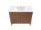 Tap into mid-century aesthetics with the Render Vanity. The Render 36" Bathroom Vanity features a durable MDF and particleboard frame with smooth walnut grain laminate, four tapered wood legs, and ample storage space behind two soft-close hinged doors. Crafted with ceramic, a single sink with an integrated countertop, 8" centerset, and rectangular sink basin continue the sleek look of this retro modern vanity. Clean lines and crisp design align for an edgy style designed to meet your needs. Boasting a mid-century modern style this vanity features a solid construction with a pleasing look and practical functionality. Assembly required and fixtures not included.Set Includes:One - Render 36" Bathroom Vanity