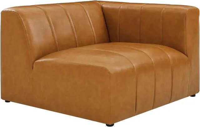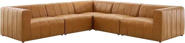 Indulge in comfort and relaxation by creating a custom living room and lounge area with the Bartlett Vegan Leather 5-Piece Sectional Sofa. Featuring subtle channel tufting, rounded corners, and vegan leather upholstery, this sectional sofa brings retro modern style and contemporary allure to your living space. Dense foam padding and a pocket coil spring system in the cushions offer a luxe seating experience with premium support and comfort. With a sturdy frame crafted from solid wood and plywood, this living room sofa features modular connectors to keep each sectional sofa piece secure and non-marking foot caps to protect flooring. Weight Capacity for Each Piece: 331 lbs.Set Includes:One - Bartlett Corner ChairOne - Bartlett Left-Arm ChairOne - Bartlett Right-Arm ChairTwo - Bartlett Armless Chair