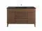 Tap into mid-century aesthetics with the Render Vanity. The Render 48" Bathroom Vanity features a durable MDF and particleboard frame with smooth walnut grain laminate, four tapered wood legs, and ample under sink storage space in full-extension drawers and behind soft-close hinged doors. Crafted with ceramic, a single sink with an integrated countertop, 8" centerset faucet holes, and rectangular sink basin continues the sleek look of this retro modern vanity. Clean lines and crisp design align for an edgy style designed to meet your needs. Boasting a mid-century modern style this vanity features a solid construction with a pleasing look and practical functionality. Assembly required and fixtures not included. Set Includes: One - 48" Ceramic Basin Top One - 48" Vanity cabinet