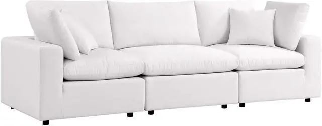 A haven for cozy relaxation right in your own backyard, Commix features plush comfort, a clean-lined design, and a spacious profile that makes an attractive statement on the porch, patio, or by the poolside. Made for sprawling out in the sun or curling up with a good book, this patio sofa features generously padded cushions covered in water-repellent and UV-resistant covers making them ideal for your outdoor space. This outdoor three-seater sofa features an all-weather construction with a powder-coated aluminum frame and non-marking foot caps to protect flooring surfaces. Beckoning guests to sit and stay a while, the Commix Outdoor Patio Collection is perfect for al fresco entertaining or lounging amidst warm weather. Each Seat Weight Capacity: 300 lbs. Set Includes: One - Commix Overstuffed Armless Chair Two - Commix Overstuffed Corner Chair