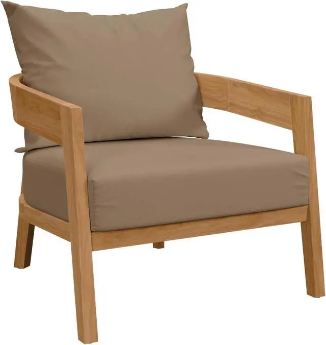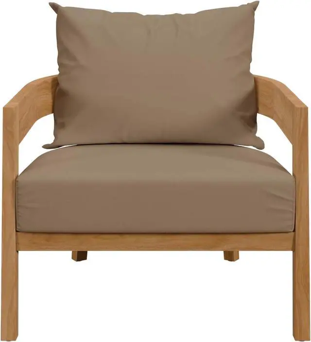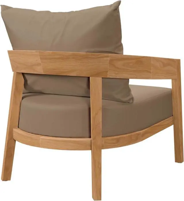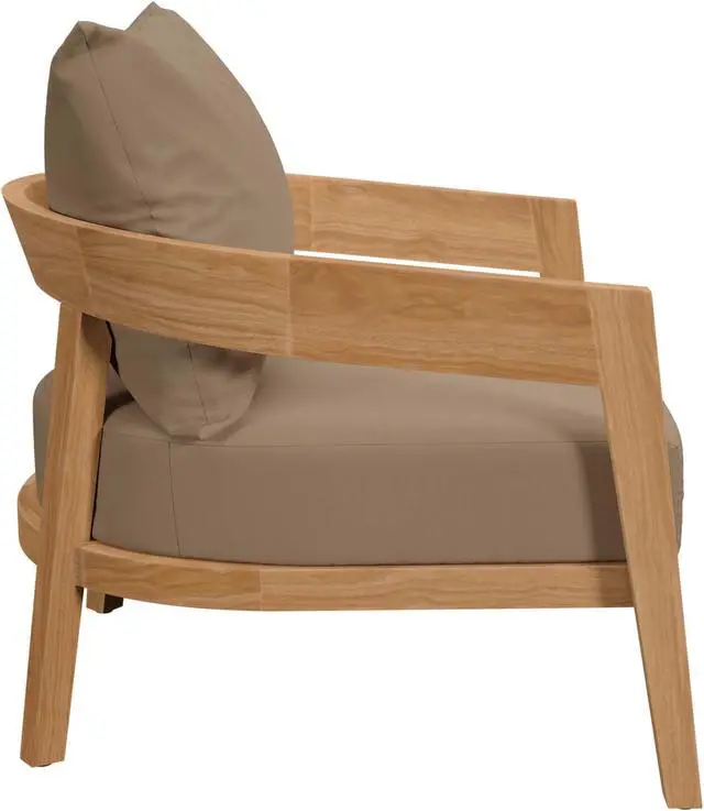 Embrace warm weather with the Brisbane Outdoor Patio Armchair. Curved lines and a clean design create contemporary charm that makes a statement on your porch, in your backyard, or poolside. Perfect for al fresco entertaining or relaxing by the pool, the Brisbane Outdoor Patio Furniture Collection is crafted with durable Premium Grade A teak wood and features comfortable cushions covered in machine washable sun, stain, water, and fade resistant Sunproof fabric covers. Includes plastic foot glides. Accent Chair Weight Capacity: 800 lbs. Set Includes: One - Brisbane Teak Wood Armchair