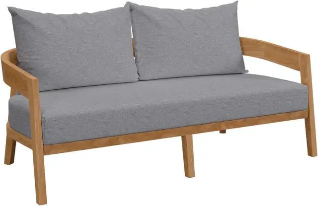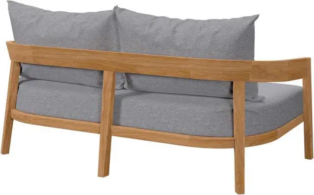 Embrace warm weather with the Brisbane Outdoor Patio Loveseat. Curved lines and a clean design create contemporary charm that makes a statement on your porch, in your backyard, or poolside. Perfect for al fresco entertaining or relaxing by the pool, the Brisbane Outdoor Patio Furniture Collection is crafted with durable Premium Grade A teak wood and features comfortable cushions covered in machine washable sun, stain, water, and fade resistant Sunproof fabric covers. Includes plastic foot glides. Loveseat Weight Capacity: 800 lbs. Set Includes: One - Brisbane Teak Wood Loveseat